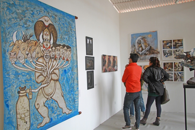 Another mixed media installation, with multiple artworks, placed in unmatching alignment one after another, by Anjila Manandhar expresses ‘Nudity to be displayed’. Her subject in the artworks is bare feet—which is a relatively mundane piece of the anatomy we see every day; it is the only form of bareness society is willing to accept. Manandhar also places minute ants all over the wall near the feet, and around a human wooden sculpture, as if to express the itch we feel when we think about nudity. Imagine ants climbing up your legs, and the eerie feeling that makes you wince—that is what brings you closer to the idea behind the artist’s work.