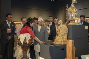 Rukumani Shrestha’s latest solo exhibition, ‘Vidambana’, invites viewers to discuss the contradiction between women deities and women in the real world.Srizu Bajracharya