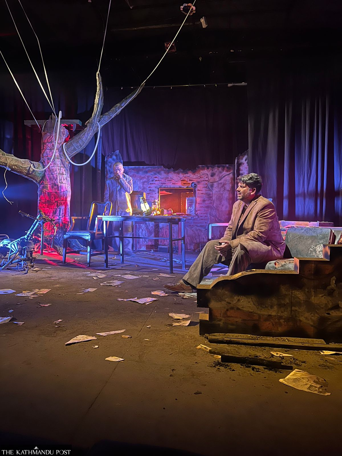 The play centres on two brothers, Ashim (Bijaya Tamrakar) and Aaryan (Eelum Dixit), whose lives have unfolded in opposite directions. Ashim has remained in Nepal, tending to their mother—portrayed not through a literal presence but through a striking visual symbol: a tree threaded with red LED lines that pulse faintly, suggesting a body suspended between life and disappearance.