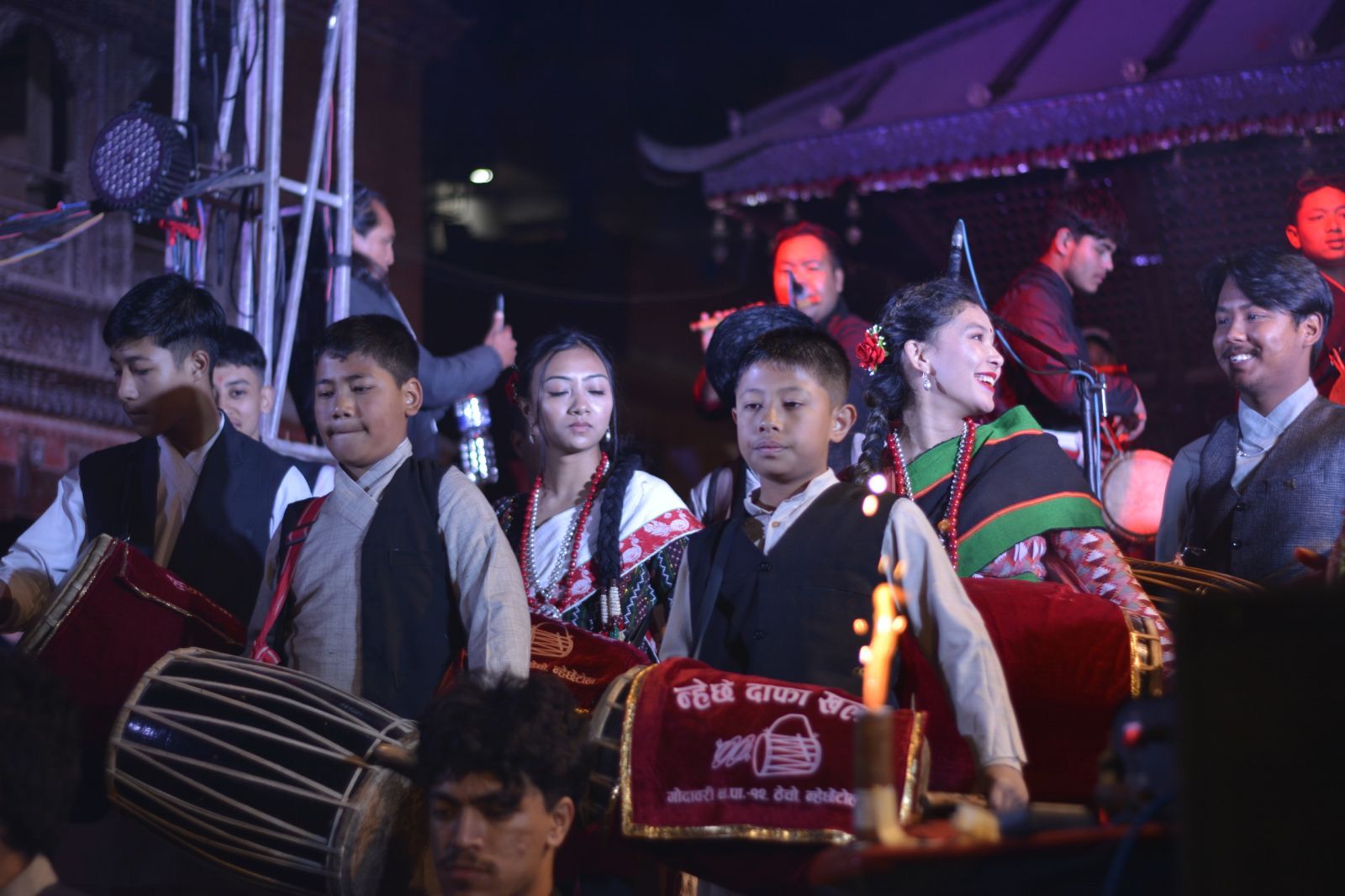 The programme featured local singers, dancers, and popular homegrown groups, including 7 Wonders Band, The Saptak Band, Sankat Band, and Newa Rhythm Band. The highlight came at the end of the event, when more than 50 musicians performed together on traditional Newa instruments such as dhimey, dhaa:, nayo khin, bhusya, khin, etc—the first time Thecho has hosted an orchestral show.