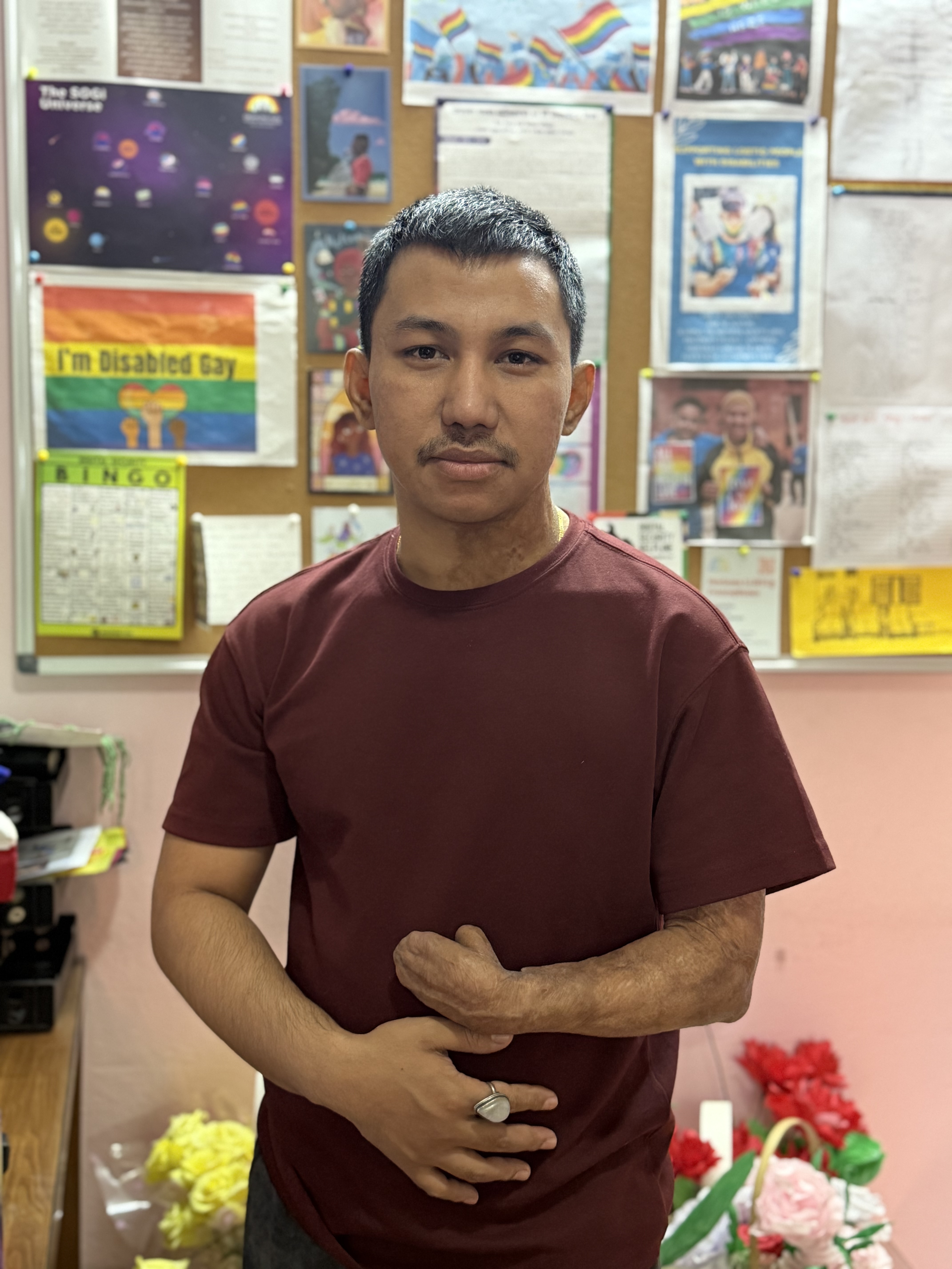 “Being queer and disabled is challenging in every aspect of life,” the 32-year-old says. When he first spoke up in the media about being queer and physically disabled in 2013, he was kicked out of the orphanage he was living in at the time and lost his education scholarship. He spent several years living on the street and had to fend for himself without any help. “Nobody wanted to give me a job. In this situation, there were only two options for me: begging and sex work.”