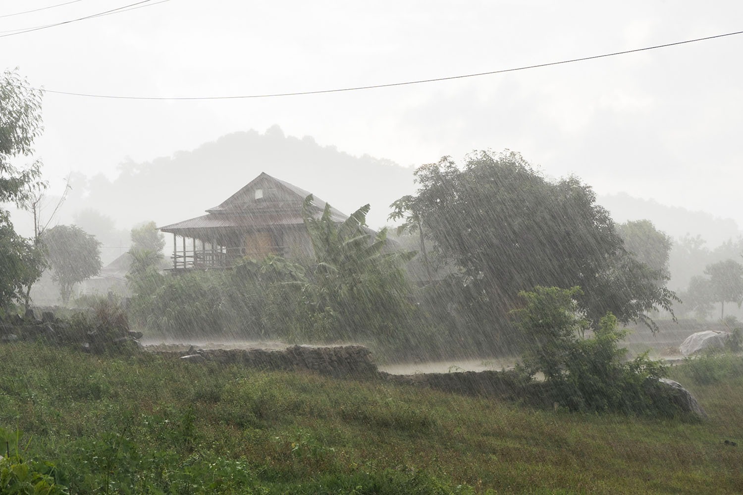 In one photograph, monsoon rain softens Kerabari into mist. Her old house stands quietly in the middle, tin roof shining under falling water. It feels less like documentation and more like memory. A place held together by rain.