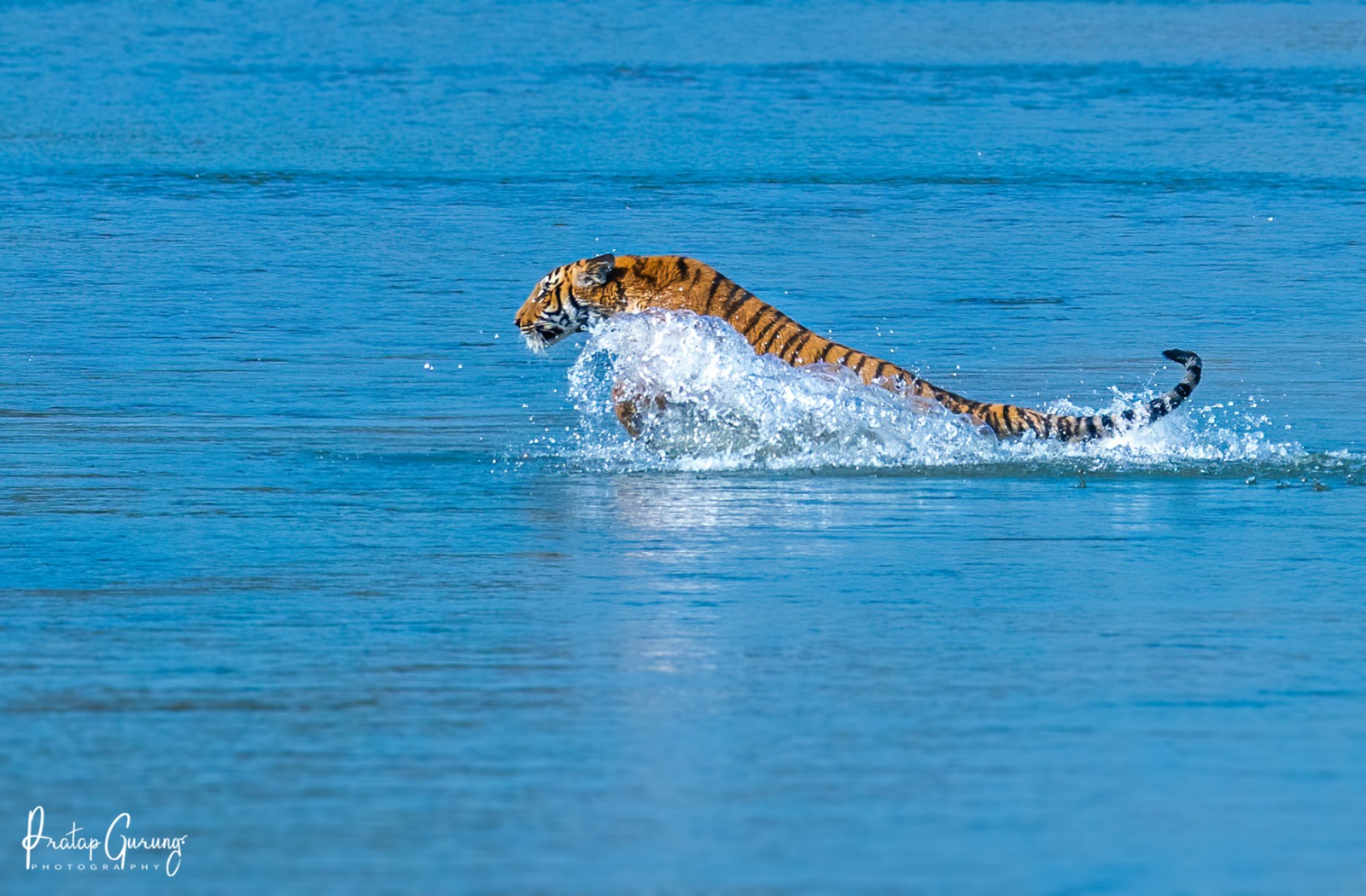 Chitwan taught him patience. For eight consecutive years, he travelled there without seeing a tiger. “People say the tiger is the most dangerous animal,” he says, “but for eight years, I did not see even one.” After Covid-19 pandemic, he switched from a Nikon to a Sony camera. Within a week, he returned to Chitwan. During a jungle walk, local guide Raju Tamang suddenly whispered, “Tiger, Tiger, Tiger.” Gurung did not believe him at first. Then he saw it sitting calmly. “It was like a dog,” he says. “I was not excited at all.” Had it been standing, he says, it might have felt more dramatic.