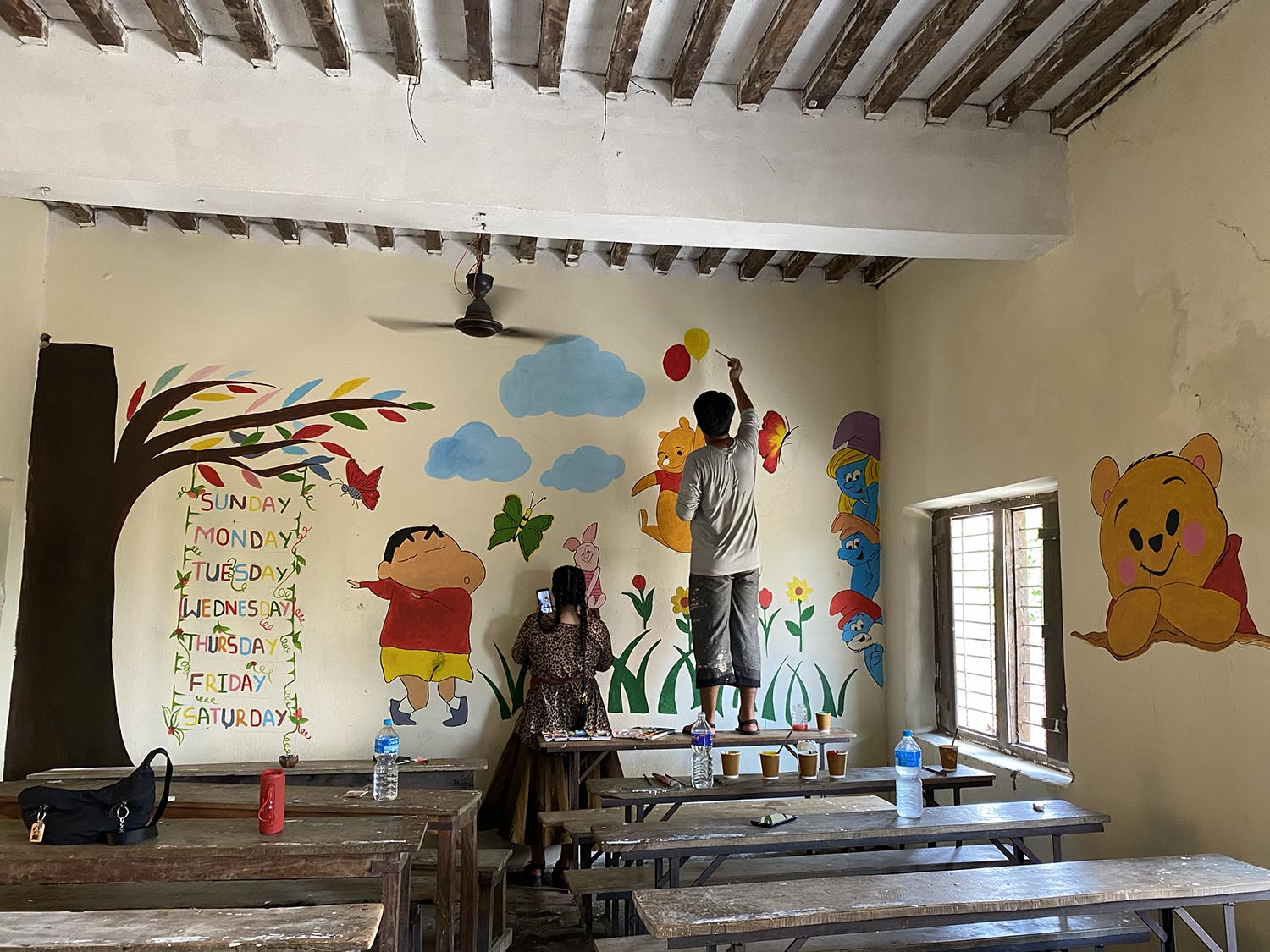 Many government schools in rural areas have dreary classrooms with broken benches and piles of dust, lacking a ‘childlike’ element. Such a condition is not caused by a lack of resources but neglect.