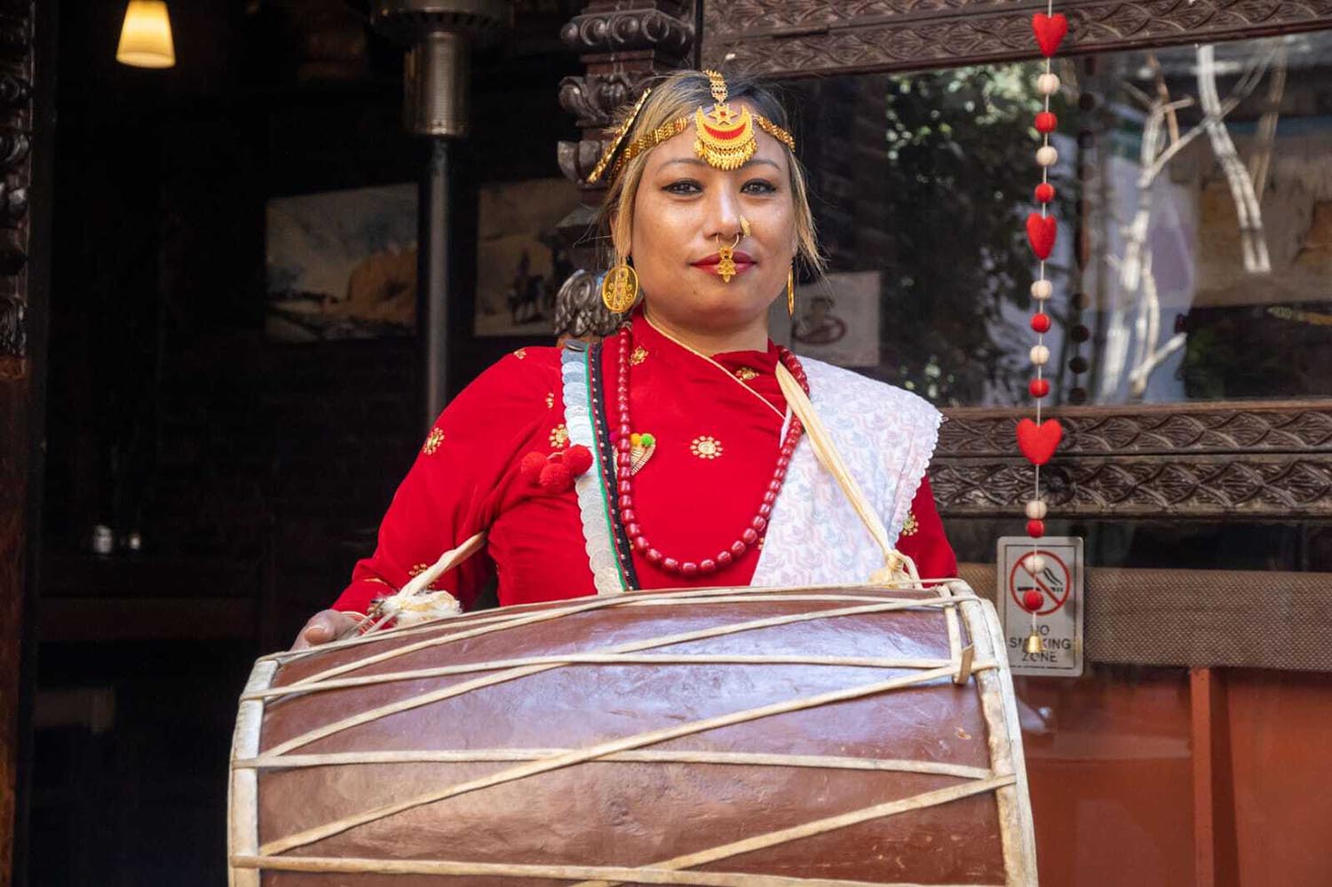 Even as opportunities slowly expanded, certain barriers remained firmly in place. Her determination led her to learn the dhime in 1996 after finishing school. But when she expressed interest in learning the dafa instrument khin from a Newa cultural group that taught traditional instruments, the members plainly told her, “We don’t teach that to females.”