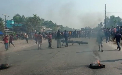 Family and locals, in protest of the incident, obstruct vehicular movement along the Rupani road section of east-west highway.