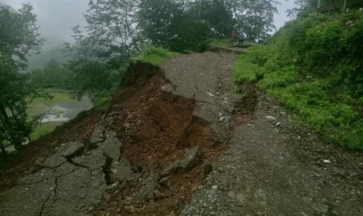 Continuous rain triggers landslides, disrupting key routes in Salyan district.