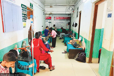 The 50-bed hospital is overcrowded with the patients mostly having symptoms of fever and diarrhoea.