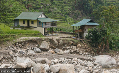 The landslide obstructs traffic on Khandbari-Kimathanka road section.