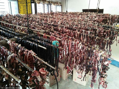 Dried yak meat locally known as sukuti is popular among domestic sightseers in Mustang.