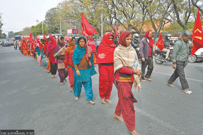 Health workers and employees have been staging a sit-in for the past one week demanding immediate release of the allowance.