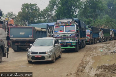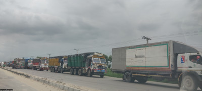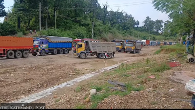 Passenger vehicles rerouted, heavy trucks stranded after disruption on East-West Highway in Nawalparasi East.