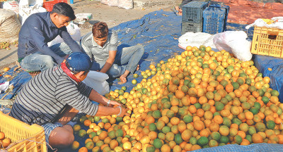 The wholesale price of orange has leapt more than 65 percent following a sharp drop in output as a hailstorm wiped out the citrus crop in the eastern hills. The fruit is being sold for Rs120 per kg wholesale and Rs180 per kg retail, said traders.