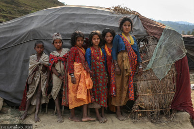 The settlement on the riverbank of the Thamghat River is home—albeit a temporary one—for around 141 individuals.