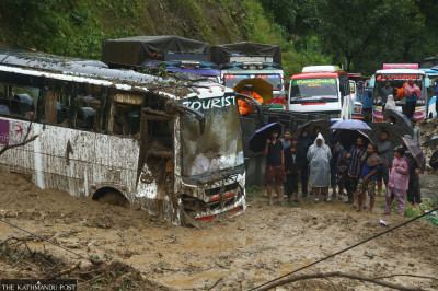Hundreds of passengers are stranded on the way and are being brought to Kathmandu via the under-construction Nagdhunga-Sisneri tunnel.