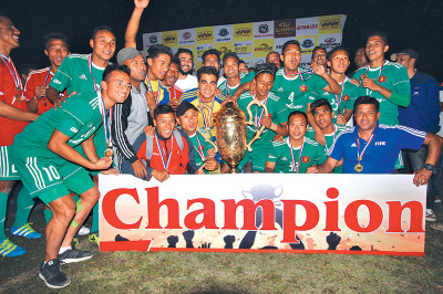 Three Star Club lifted the 20th Tilottama Gold Cup football tournament title after two second half goals gave them a 2-0 victory over Nepal Police Club in the final at the Anfa Technical Centre on Saturday.