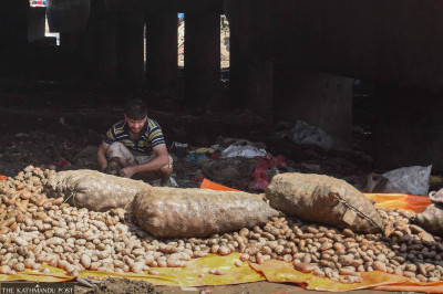 The market lies in disarray as swollen Bagmati River sweeps away fresh produce, causing price hike.