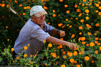 Farmers are fully immersed in harvesting and weaving marigold flowers into garlands and decorations for the festival.