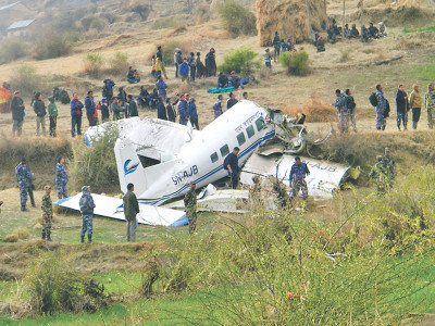 Two pilots were killed when a small passenger plane belonging to Air Kasthmandap crash landed in Chilkhaya in Kalikot district on Friday afternoon. All nine passengers survived. They have sustained minor injuries. The plane was en route from Nepalgunj to Jumla.