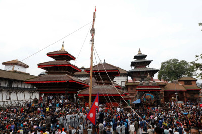 Indra Jatra, known as the biggest festival of the Kathmandu Valley, formally began on Friday with the erection of a wooden ceremonial pole (lingo) and the fluttering of a flag named after the Hindu God Indra at Hanumandhoka.