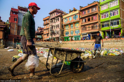 Many street vendors in Kathmandu are plying their trade when municipal police presence is minimal.