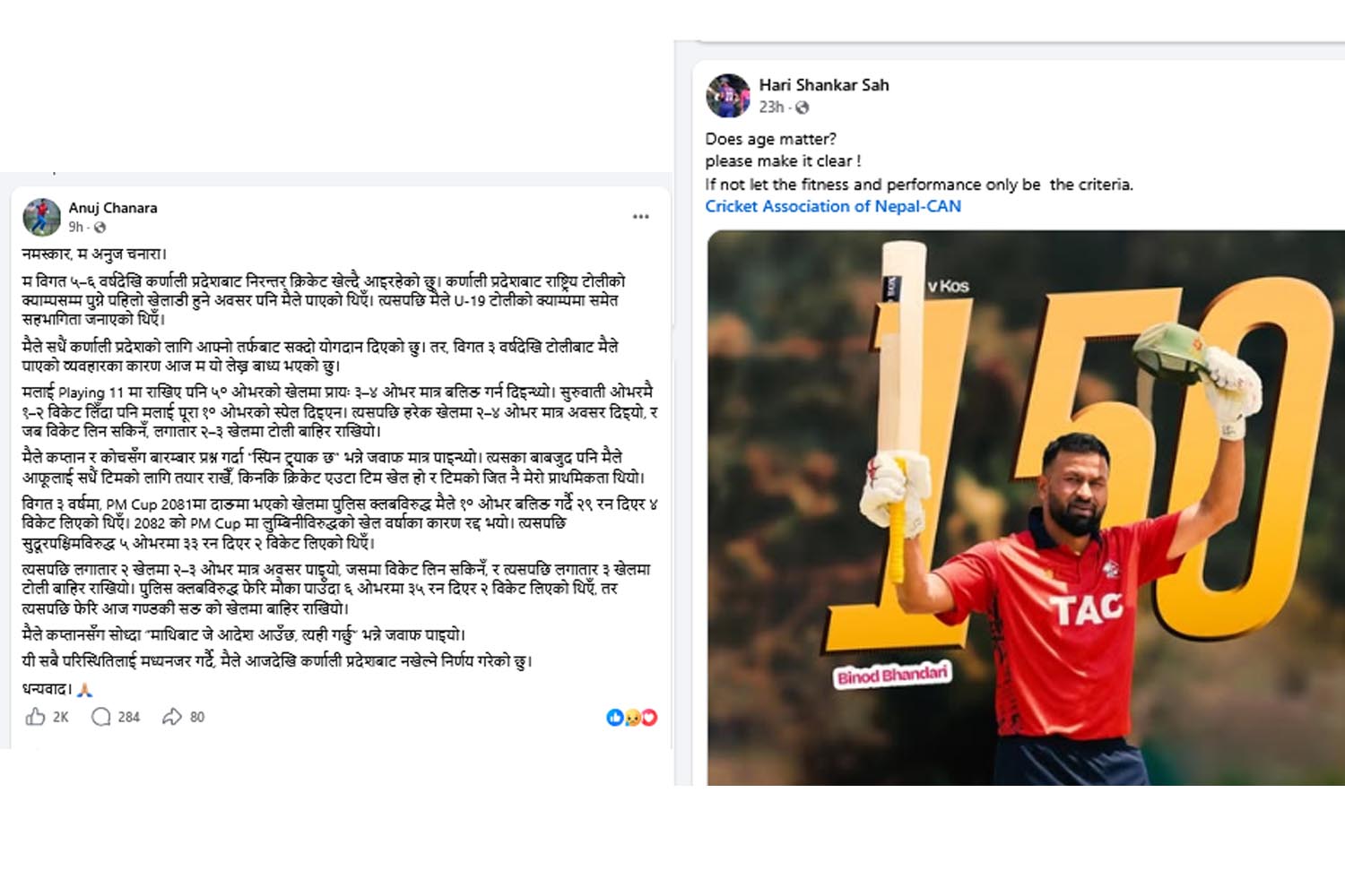 The latest controversy emerged on Tuesday after Karnali Province bowler Anuj Chanara announced his decision to part ways with the provincial side, citing years of unfair treatment.