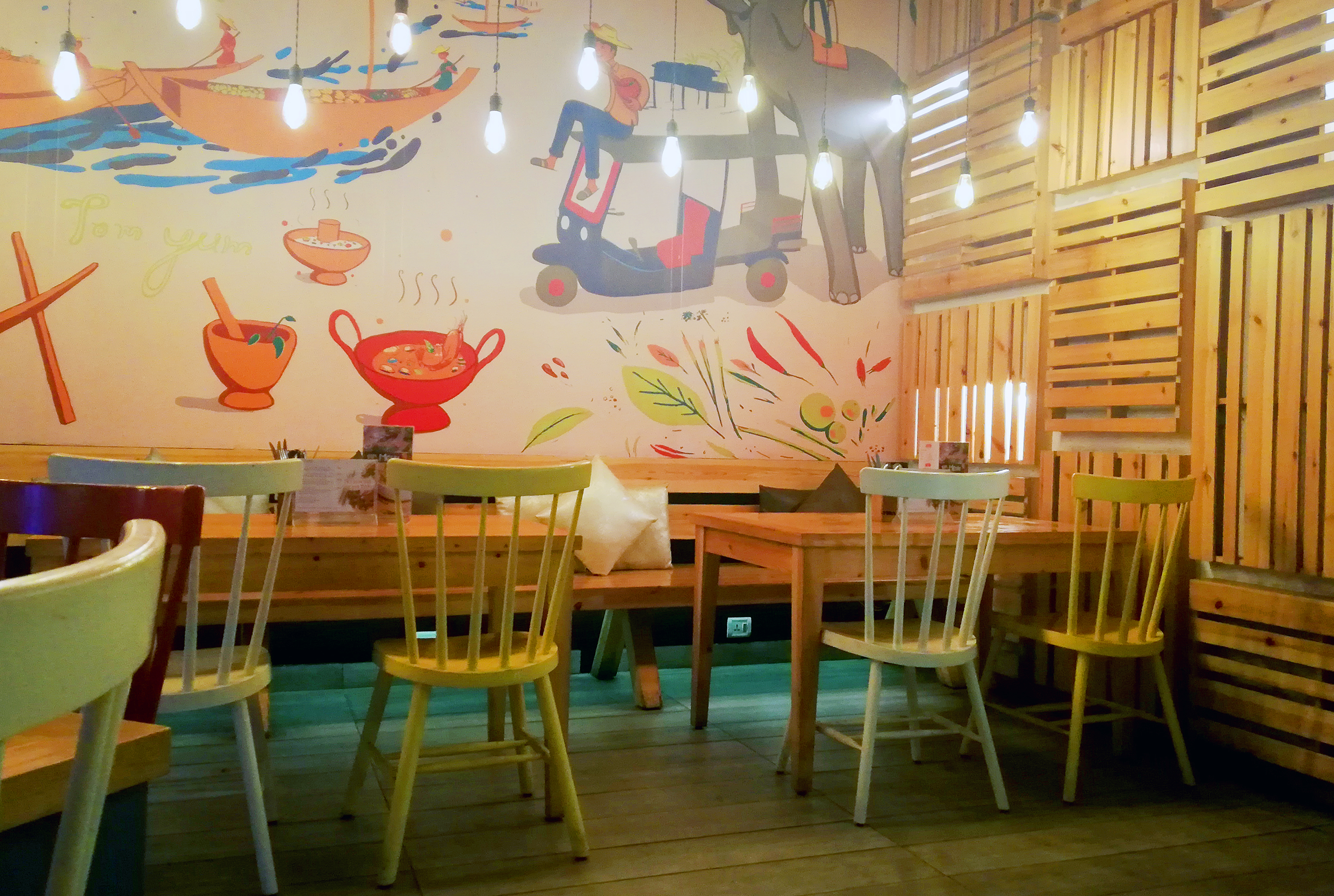 As one walks into Mango Chili, outside which sits a cardboard cut-out of a tuk-tuk, the bright red and yellow backlit sign says one could expect the same. It’s a fishbowl restaurant, along the same edge of Labim Mall as Le Mirch, Dalle and Roadhouse. Inside, one can find Thai caricatures, sitting on other Thai caricatures, painted on the wall. Like the restaurants that flank this place, Mango Chili is part of a larger group of restaurants—Mango Tree Worldwide. The pedigree should mean the food is decent.