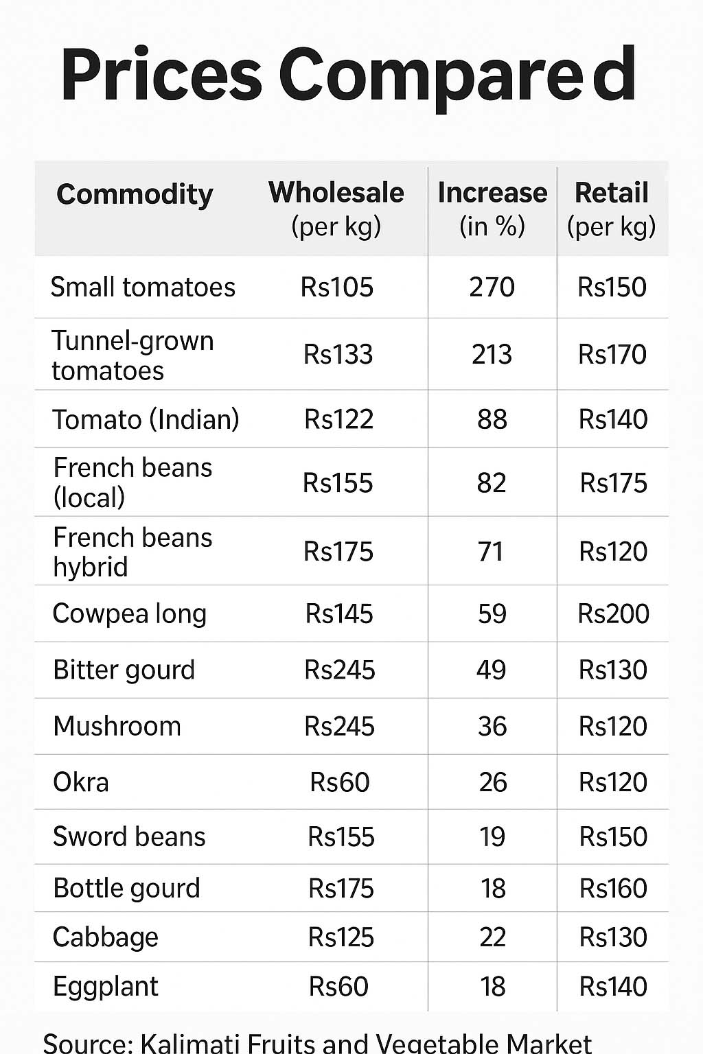 The sustained surge has pushed wholesale and retail rates up by more than 200 percent in Nepal’s biggest vegetable hub, the Kalimati Fruits and Vegetable Market, deepening concerns for consumers already grappling with rising living costs.