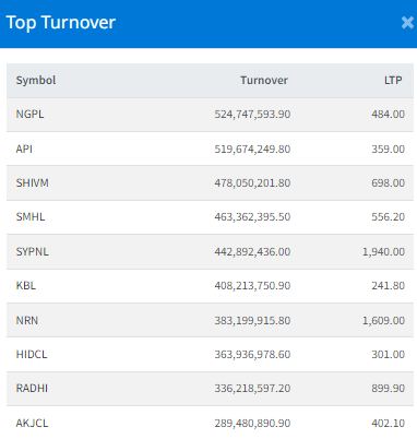 Ngadi Group Power led turnover, with transactions worth over Rs 524 million, closing at Rs 484.