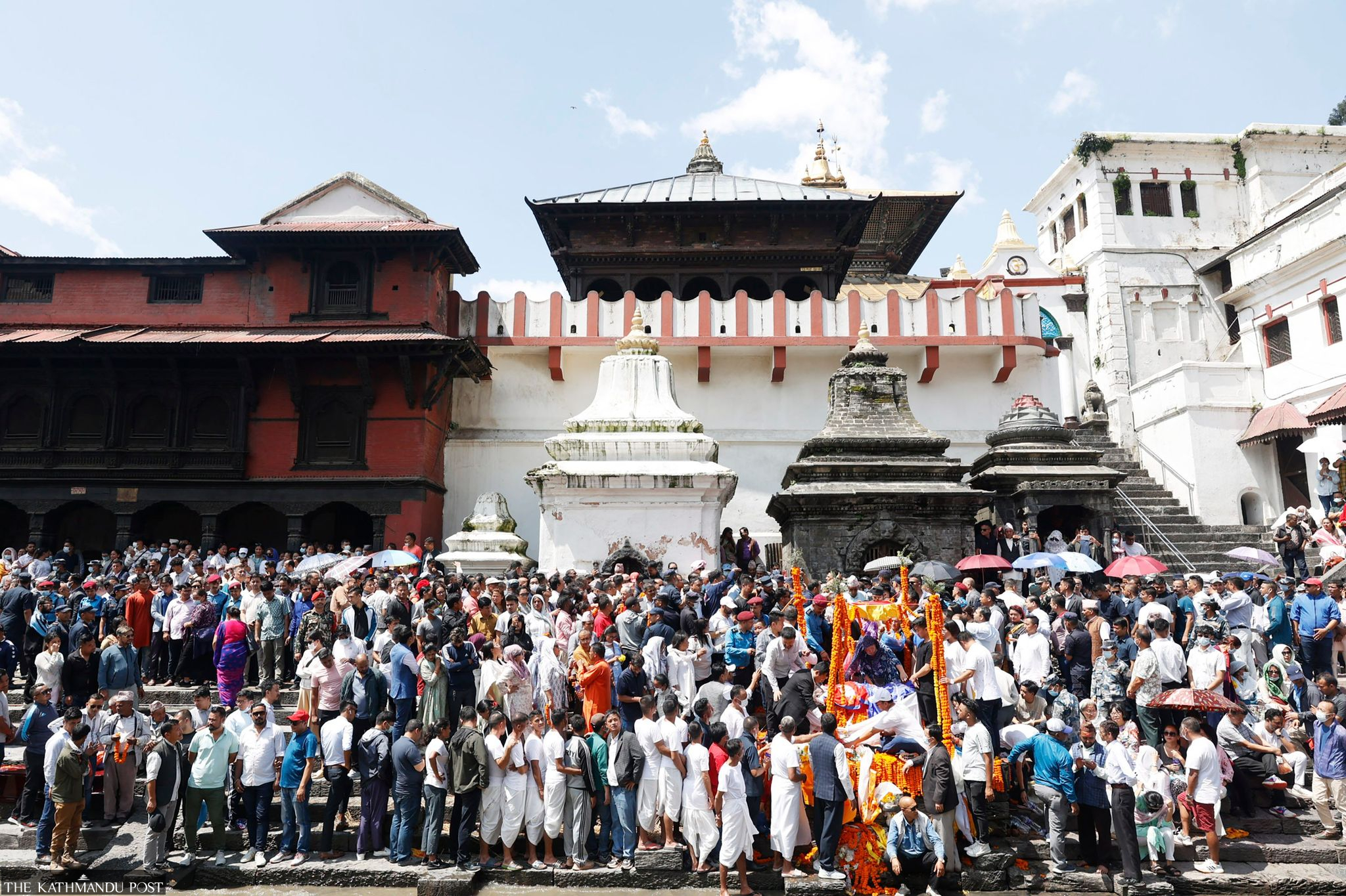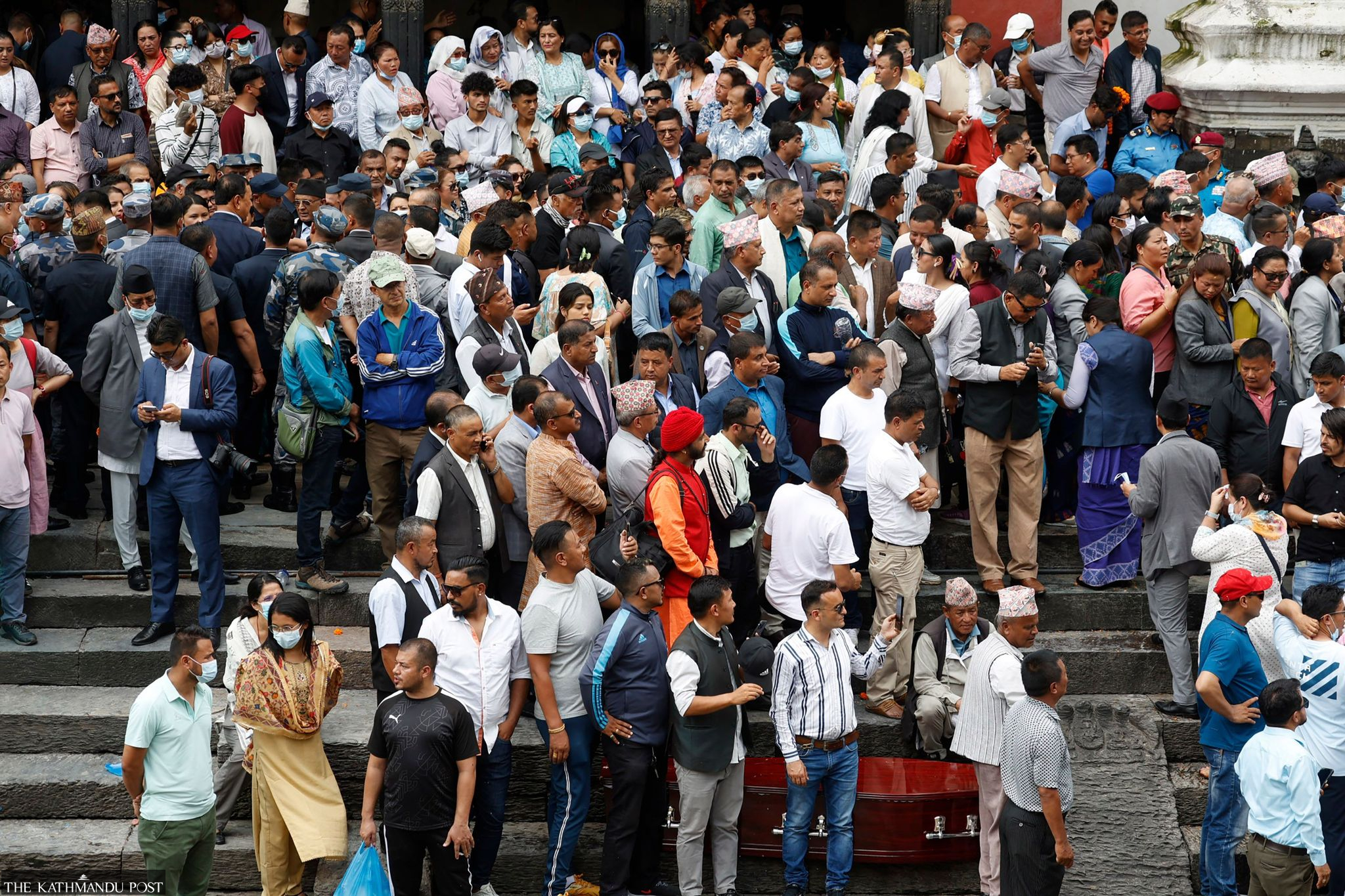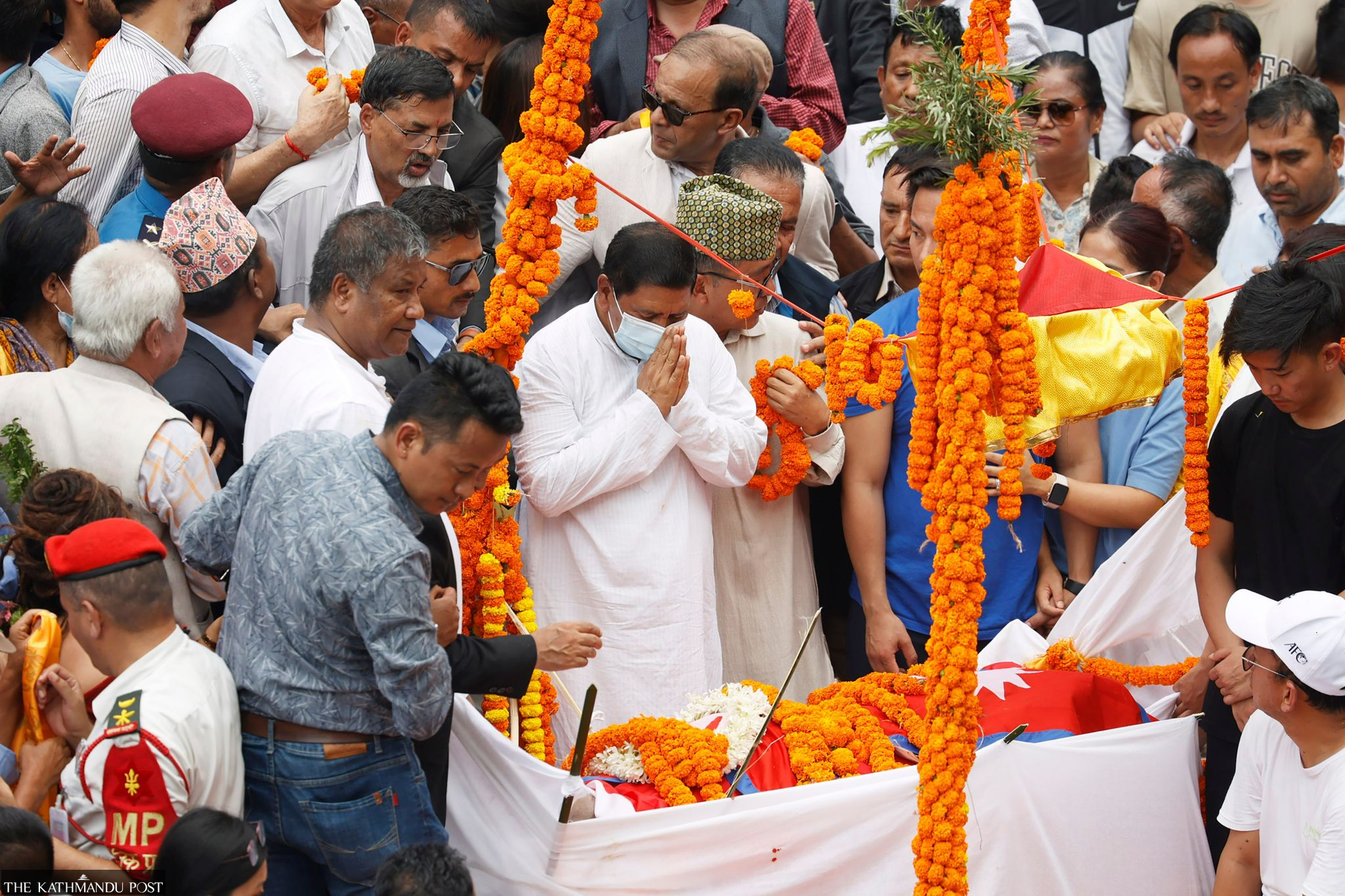 CPN-UML chair KP Sharma Oli, Nepali Congress President Sher Bahadur Deuba, House Speaker Dev Raj Ghimire, and Home Minister Narayan Kaji Shrestha, among other leaders and a large number of his well-wishers were present at the crematory to pay their tributes to him.