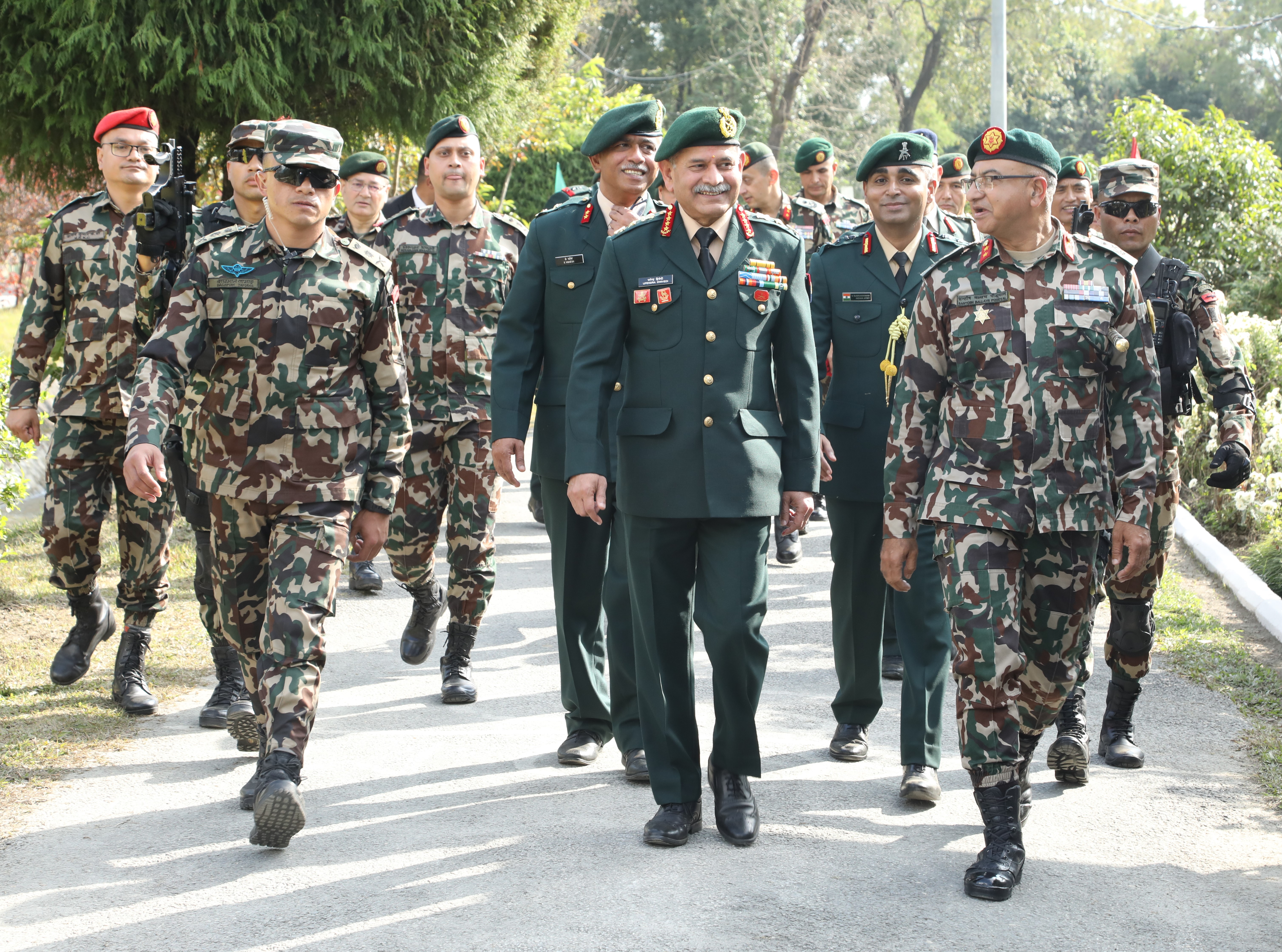 The Indian Army Chief arrived in Kathmandu on Wednesday on a five-day official visit. The five-member delegation, led by General Dwivedi, also includes Sunita Dwivedi, chairperson of the Army Wives Welfare Association of the Indian Army.