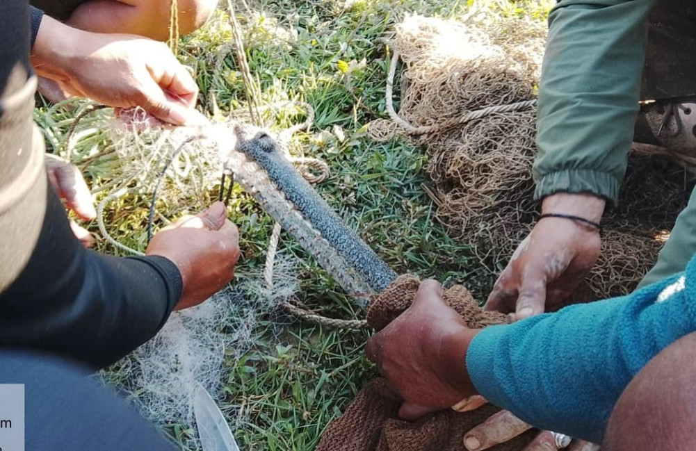 Later the same day, a team from Chitwan National Park rescued a gharial trapped in a fishing net in the Budhi Rapti stream near Chitrasari Bridge in ward 8 of Ratnanagar Municipality.