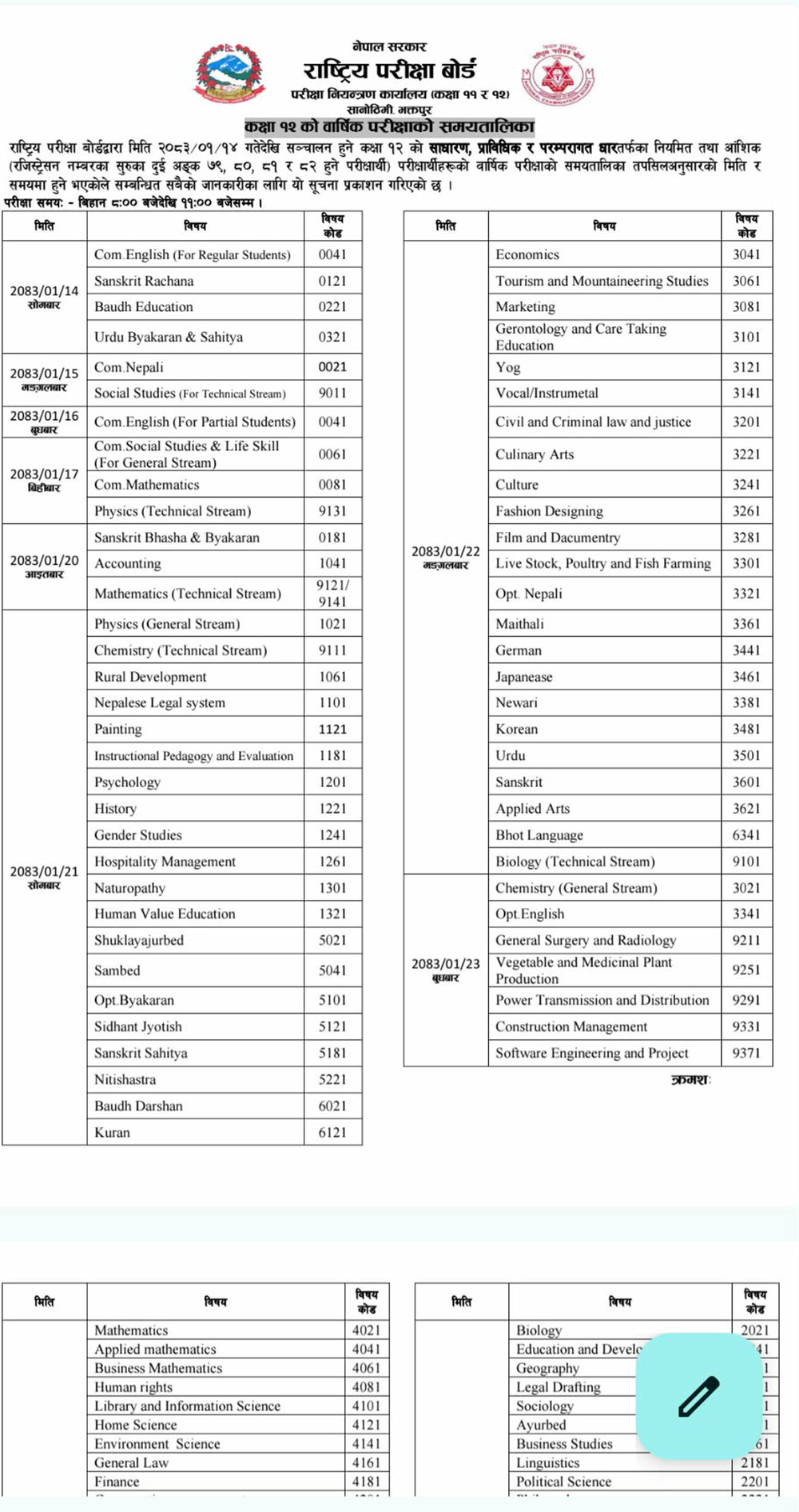The National Examination Board publishes exam schedule.bookmark![]()