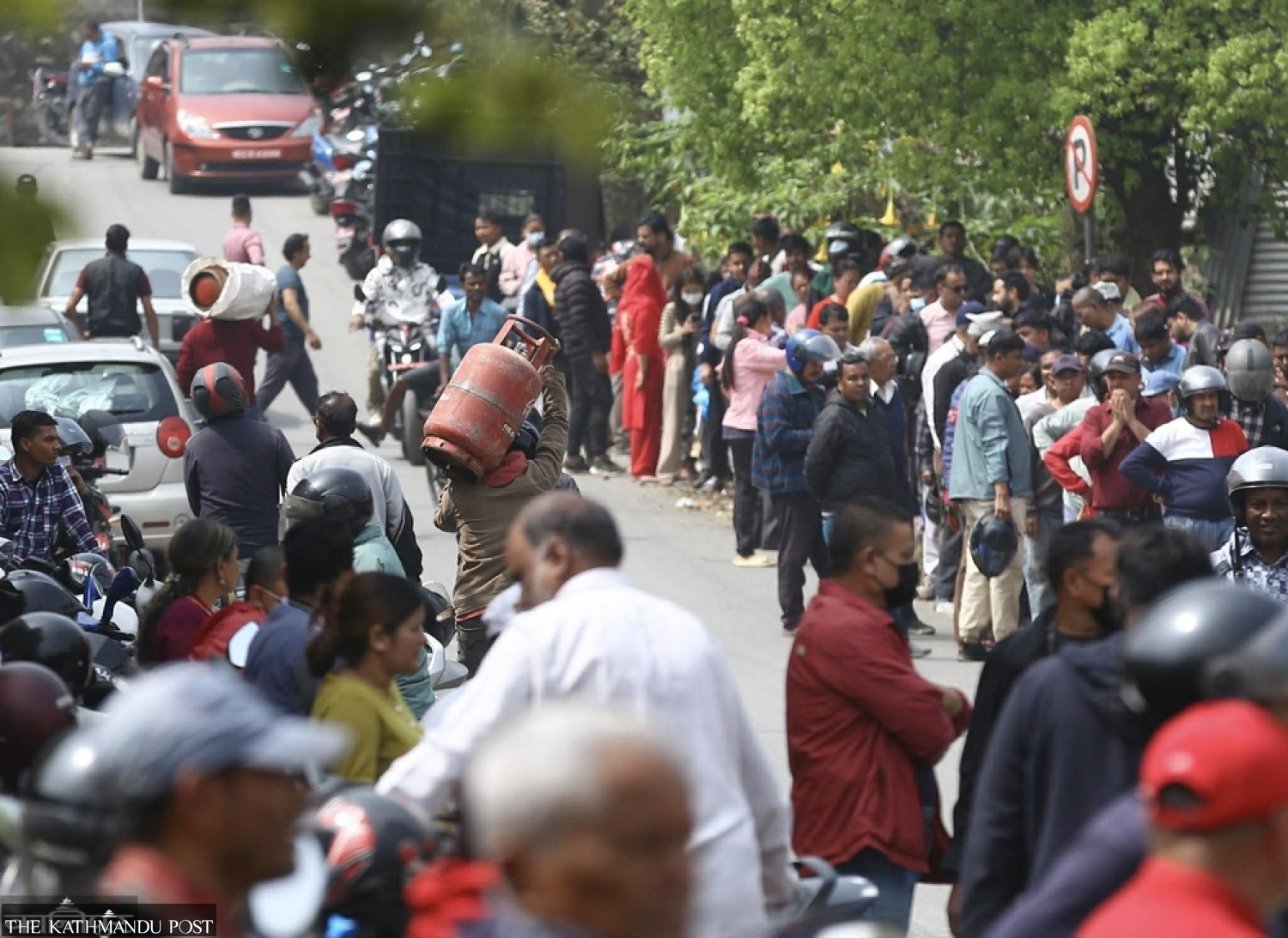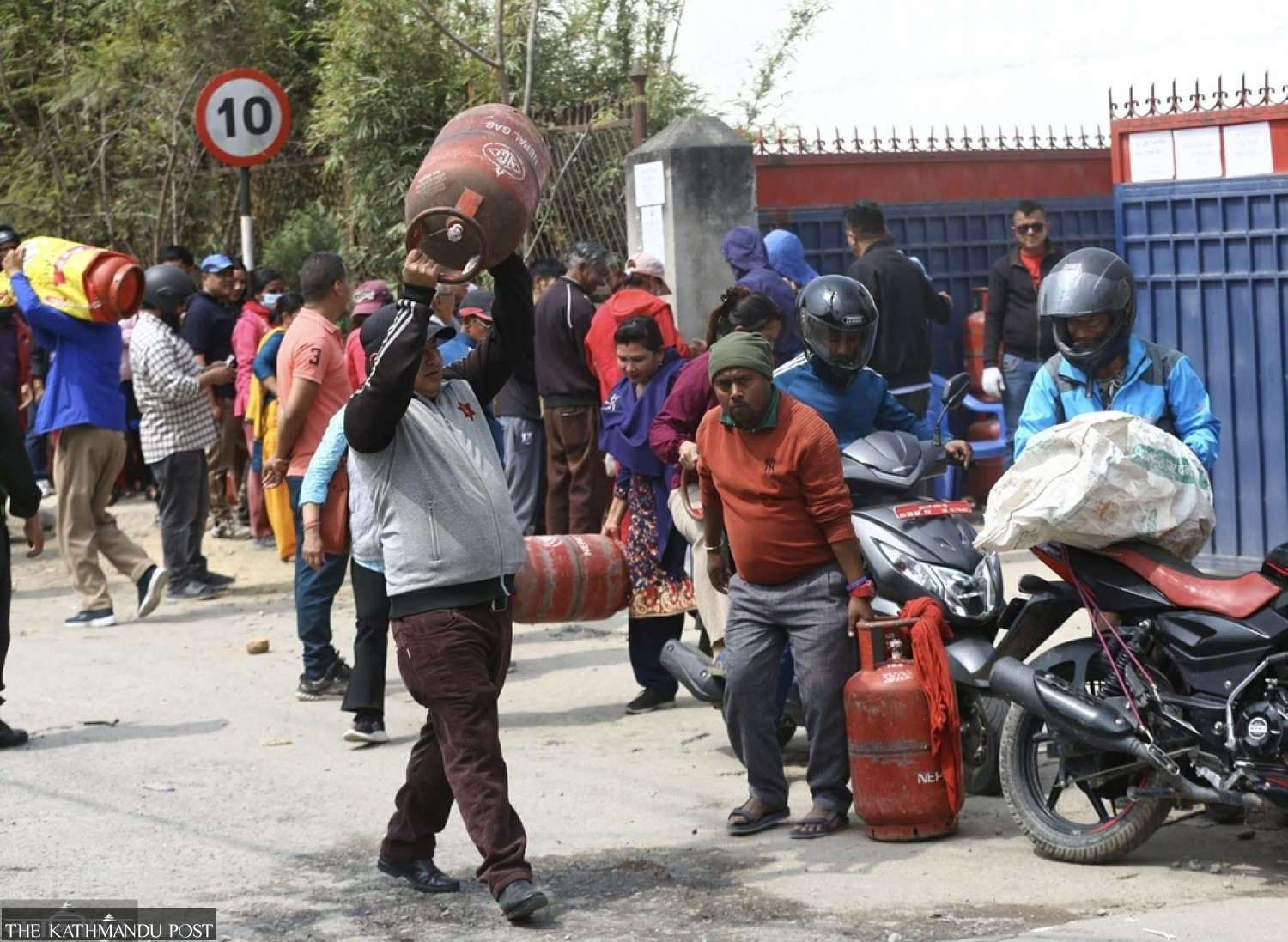 Long queues have formed at gas depots across the market. The Nepal Oil Corporation said it has started supplying half-filled cylinders from Friday in a bid to meet demand.