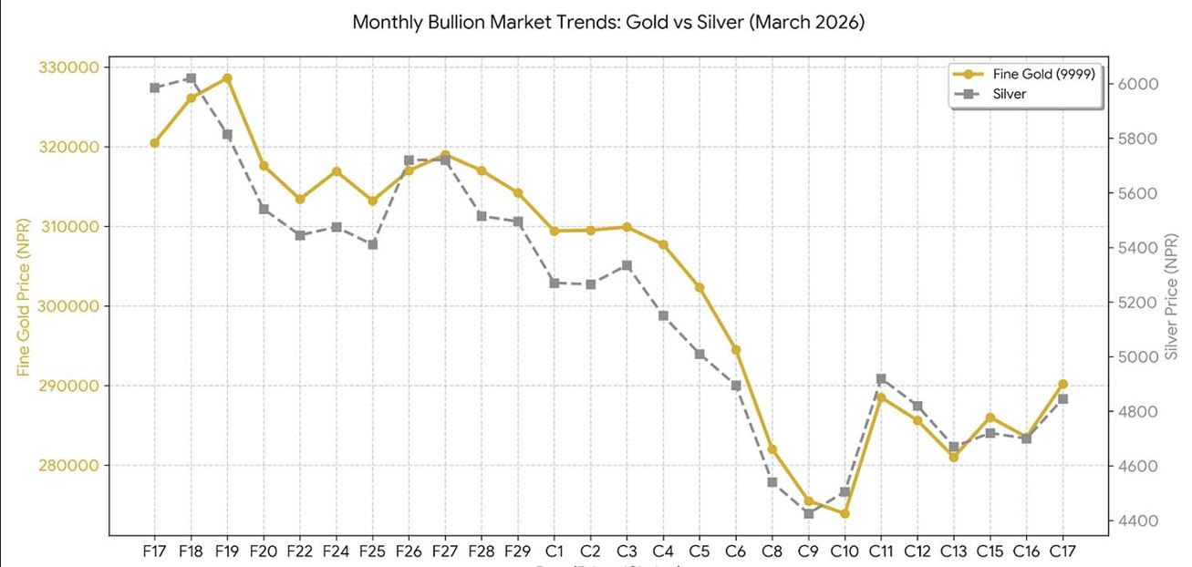 Nepali bullion market sees sharp volatility in March