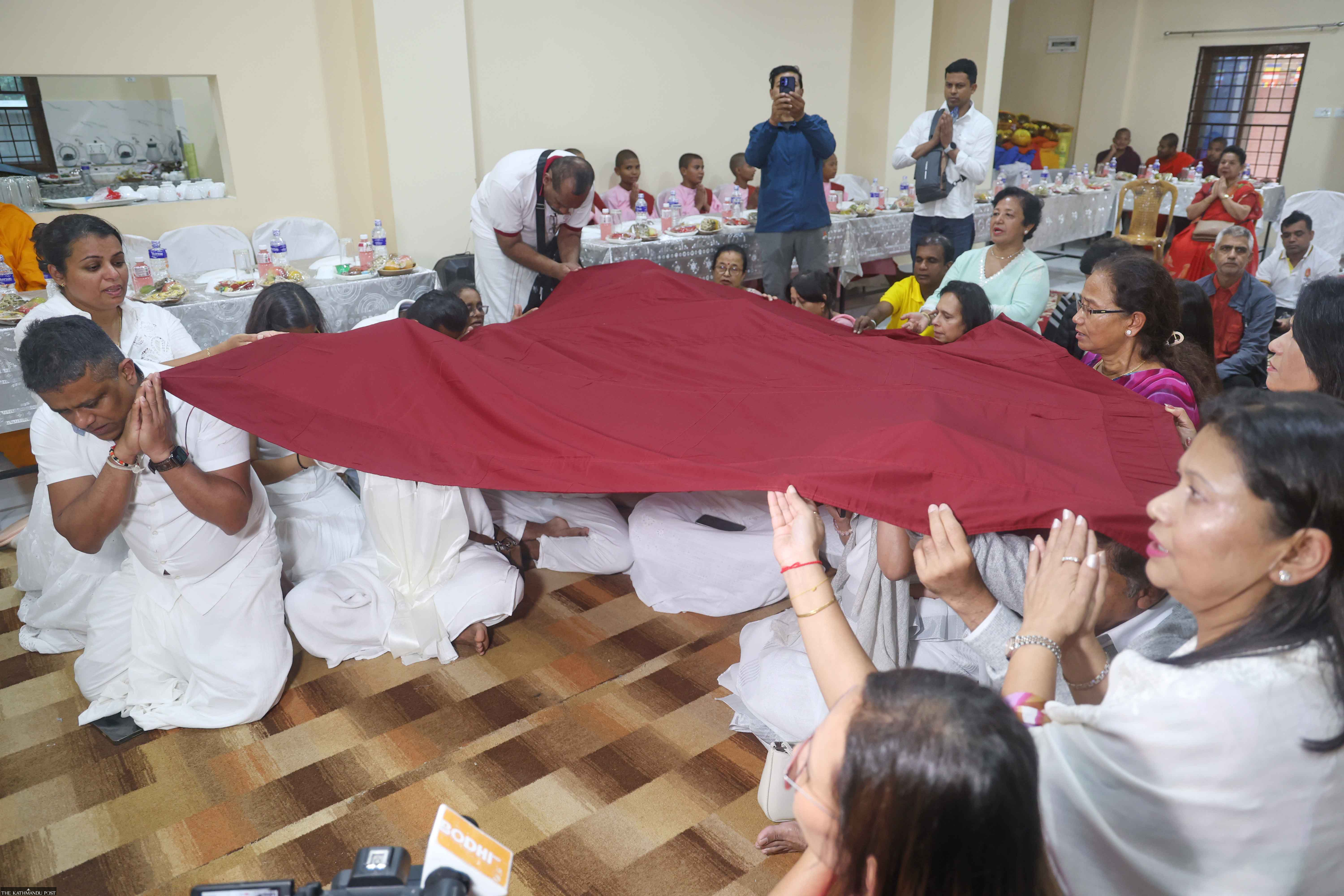 Basna Walpit, a Sri Lankan devotee, said she felt a sense of fulfillment attending the event. “For us, performing the robe-offering ceremony in Lumbini completes a spiritual circle,” she said. “It’s believed that such an offering fulfills one’s aspirations.”