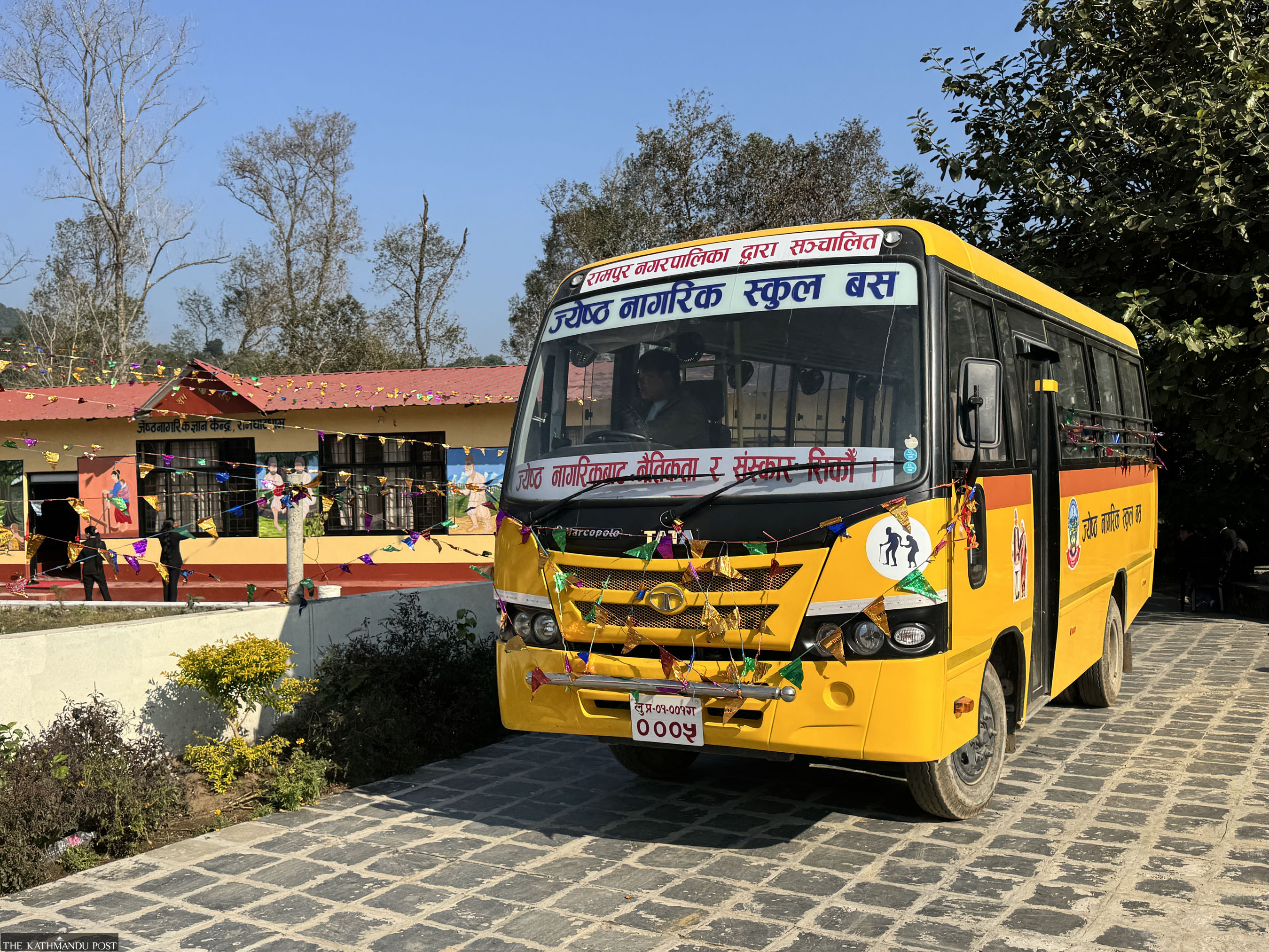 The municipality has arranged a school bus to transport senior citizens to and from the school. Those from all ten wards of Rampur Municipality will be brought to the school in the morning and dropped home in the evening. Chief Administrative Officer Surya Darshan Pandit said that in the first phase, senior citizens living along the Kaligandaki Corridor road would receive this service, with plans to include those from other areas in the future.