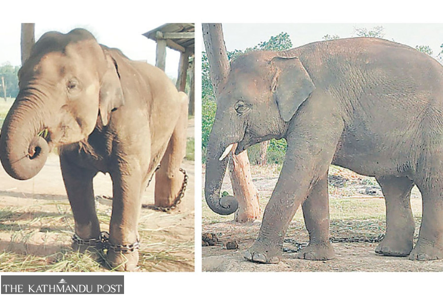 Two Asian elephants born and raised in Chitwan were flown to Qatar on Wednesday evening.