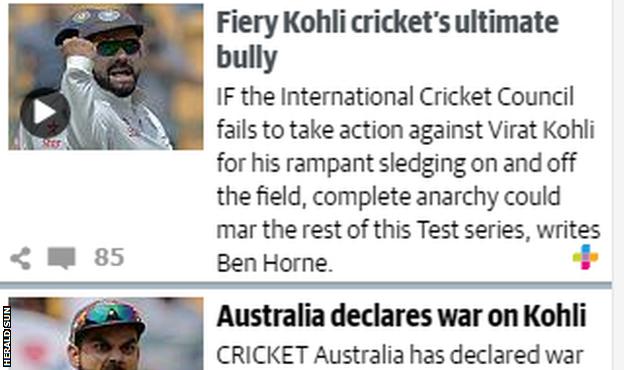 Meanwhile, one Australian newspaper describes Kohli as "cricket's ultimate bully".