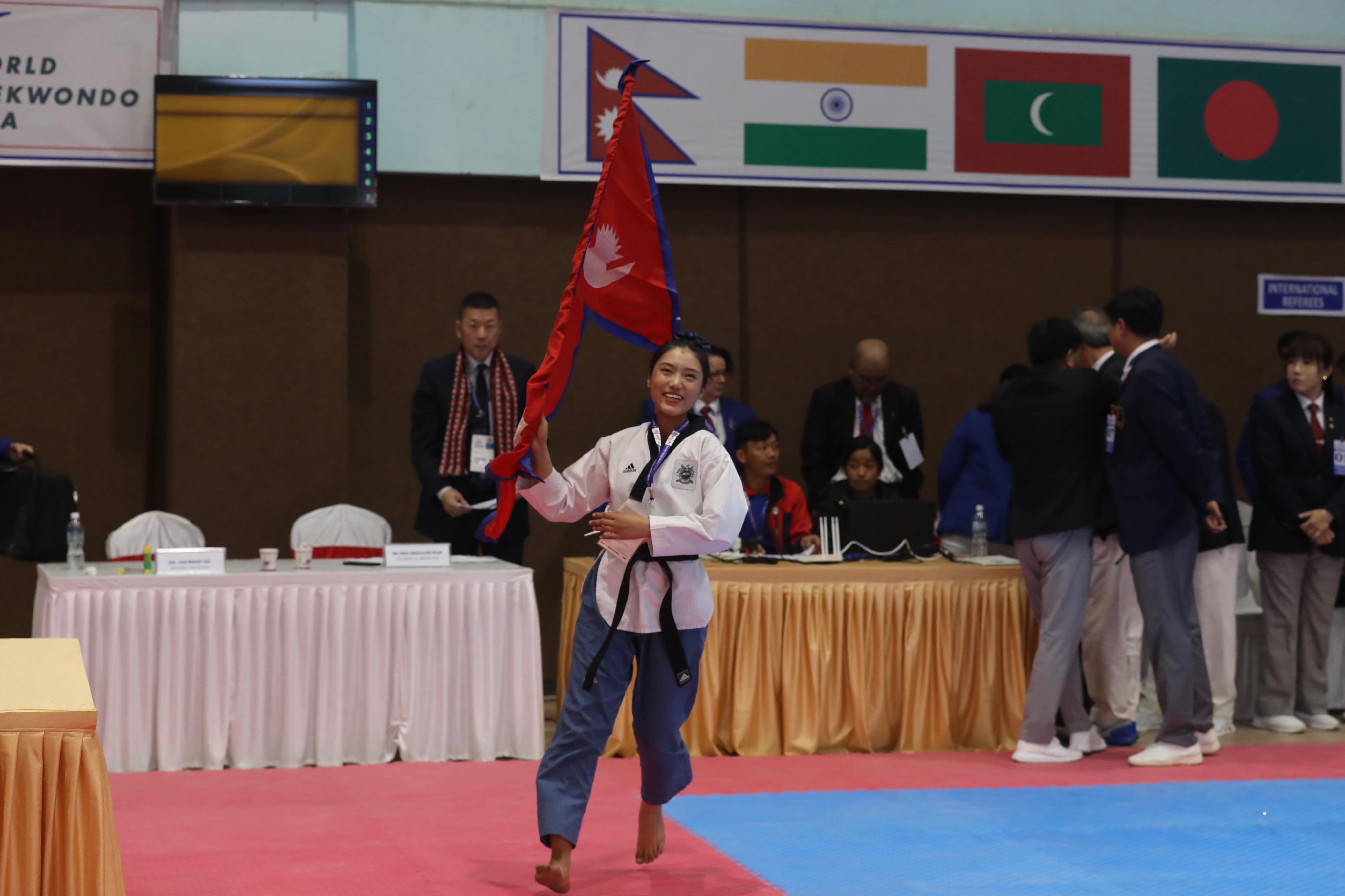 Kamal Shrestha won a gold medal in Taekwondo. He defeated Rahul Jain of India in men's individual poomsae under-29 category. Shrestha secured 8.270 points against Rahul's 8.200.