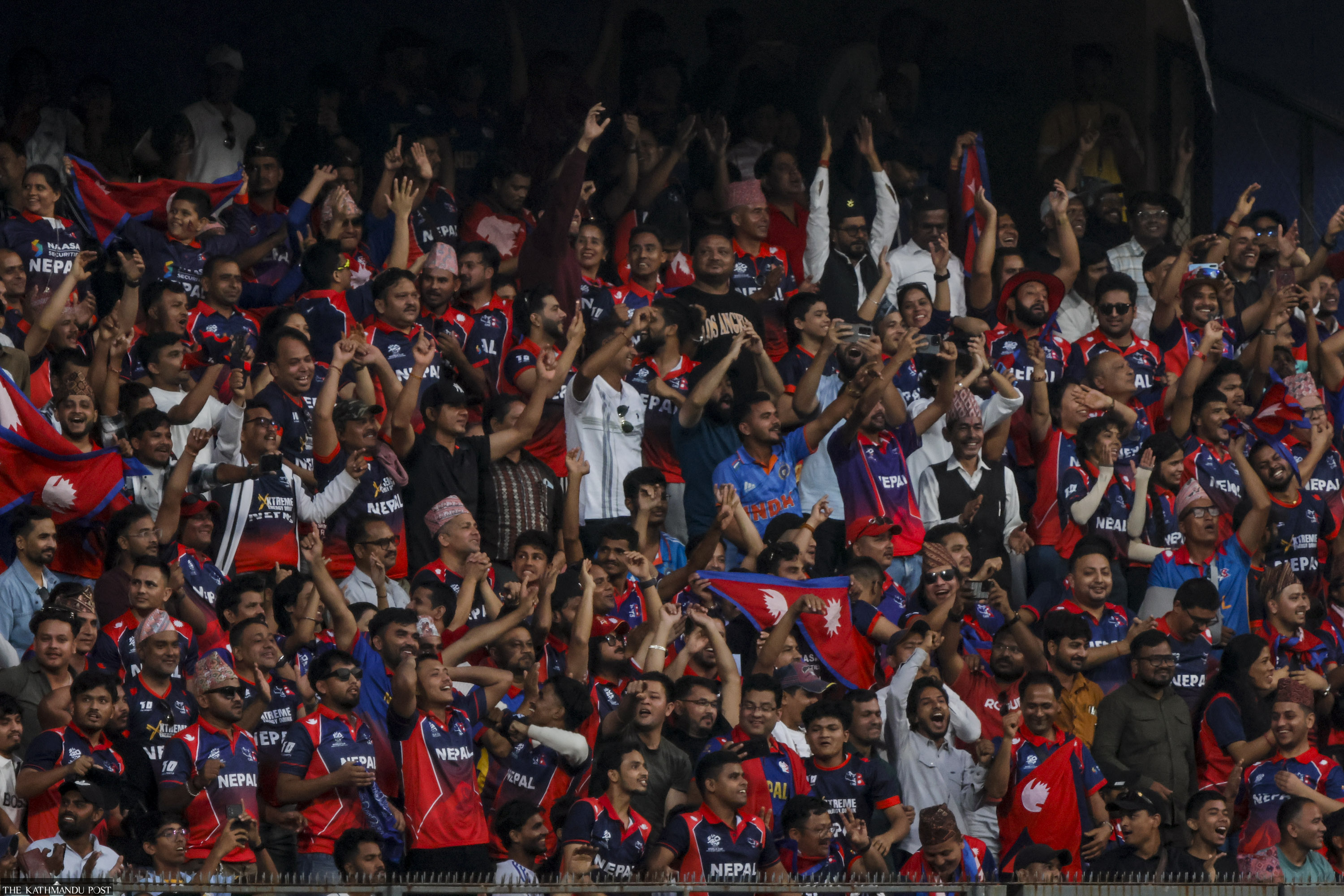 By 3pm, the stadium had come alive with the Nepali fans, packing the stands and waving the triangular Nepali flag. Soon it became clear that the crowd would be hugely one-sided. There were cheers when Nepal took wickets and a deafening silence when they conceded boundaries.