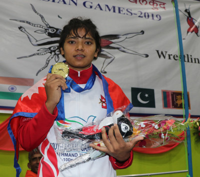 Sangita Dhami is the latest athlete to win the gold for Nepal in wrestling.