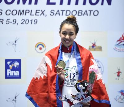 The 17-year-old Nepali swimming sensation on Sunday added 400m freestyle title to 200m freestyle and 200m backstroke victories. Duana Lama won silver in 200m butterfly.