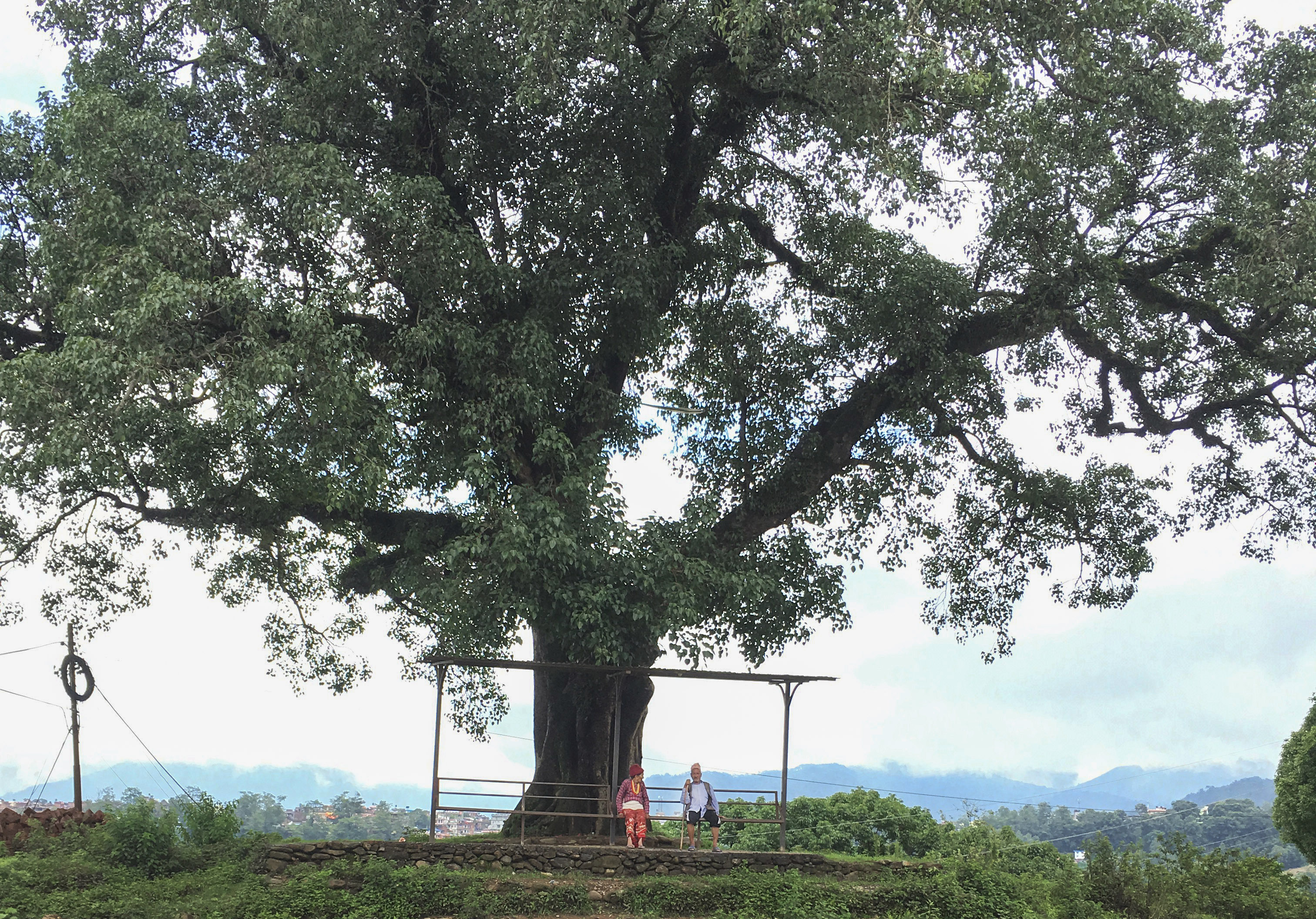 Today husband and wife Gyan Bahadur Karki and Ful Maya Karki sit on a bench under that tree. “We came here to rest because this place feels like our Okhaldhunga, but I just heard that they are turning this place into a bus park,” says Gyan Bahadur Karki. As the elderly couple meander away, tiny droplet tap the tin roof. “It’s going to rain, we’ll head home now,” says Ful Maya.