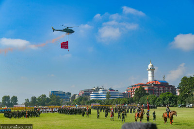 The newly reconstructed Dharahara spans an area of 42.2 ropanis and features 22 storeys.