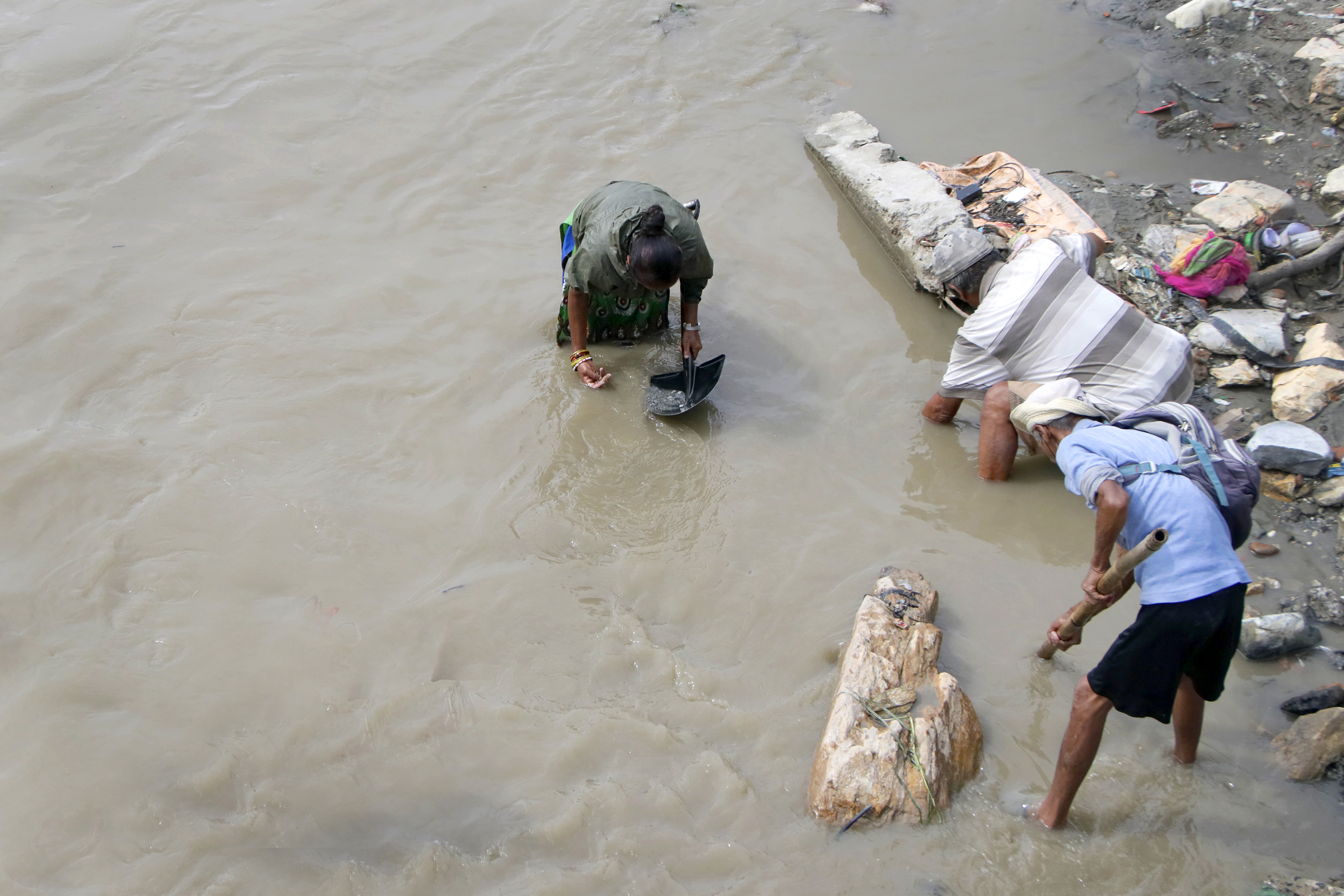 People scour for gold and other precious metals in the Bishnumati river at Dhalko, Kathmandu, on Tuesday. Anish Regmi/TKP