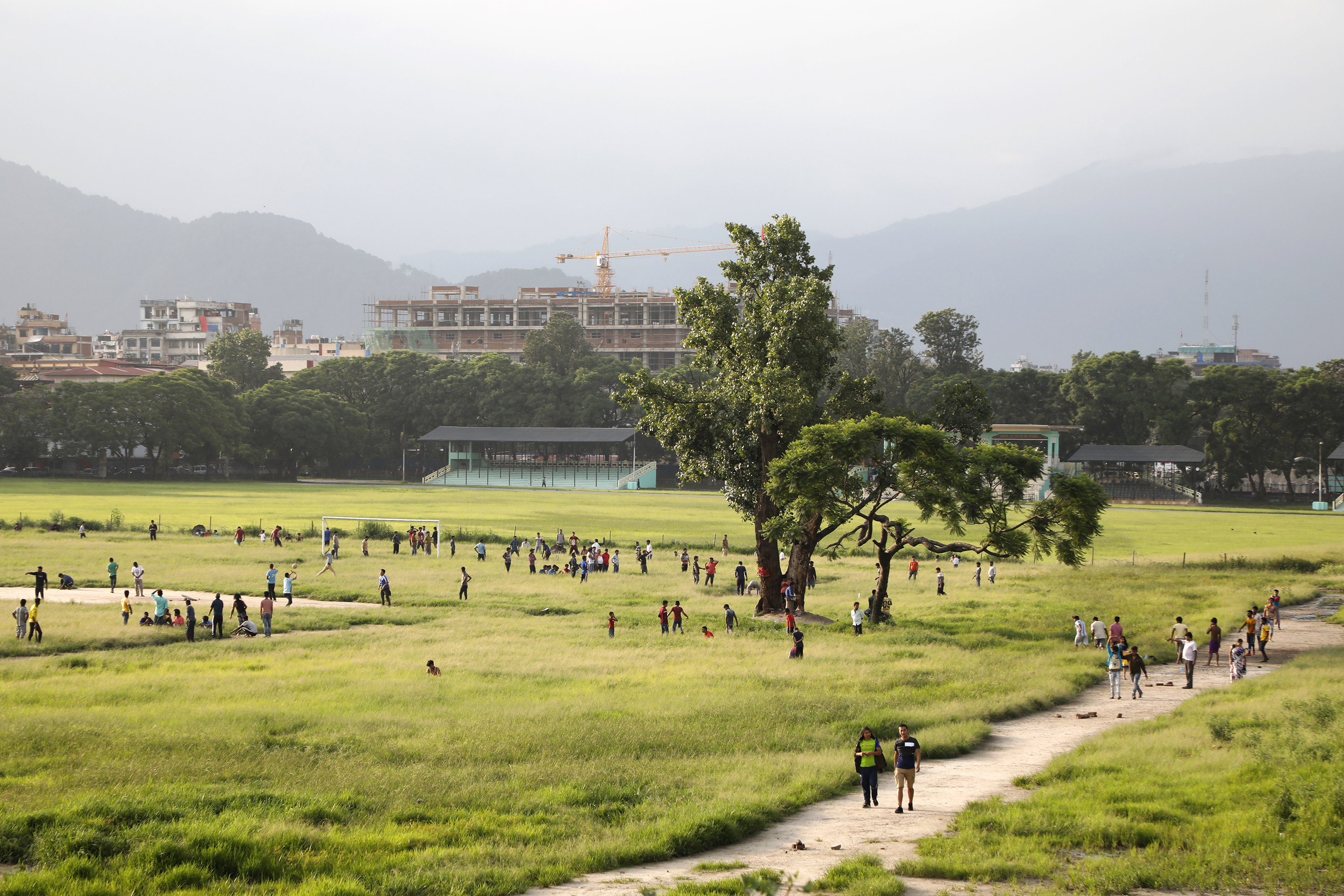 People engage in various activities at Tundikhel in the Capital following a pause in rain on Saturday. As the Valley’s open spaces shrink, people have fewer places to walk around and play. Sanjog Manandhar/TKP
