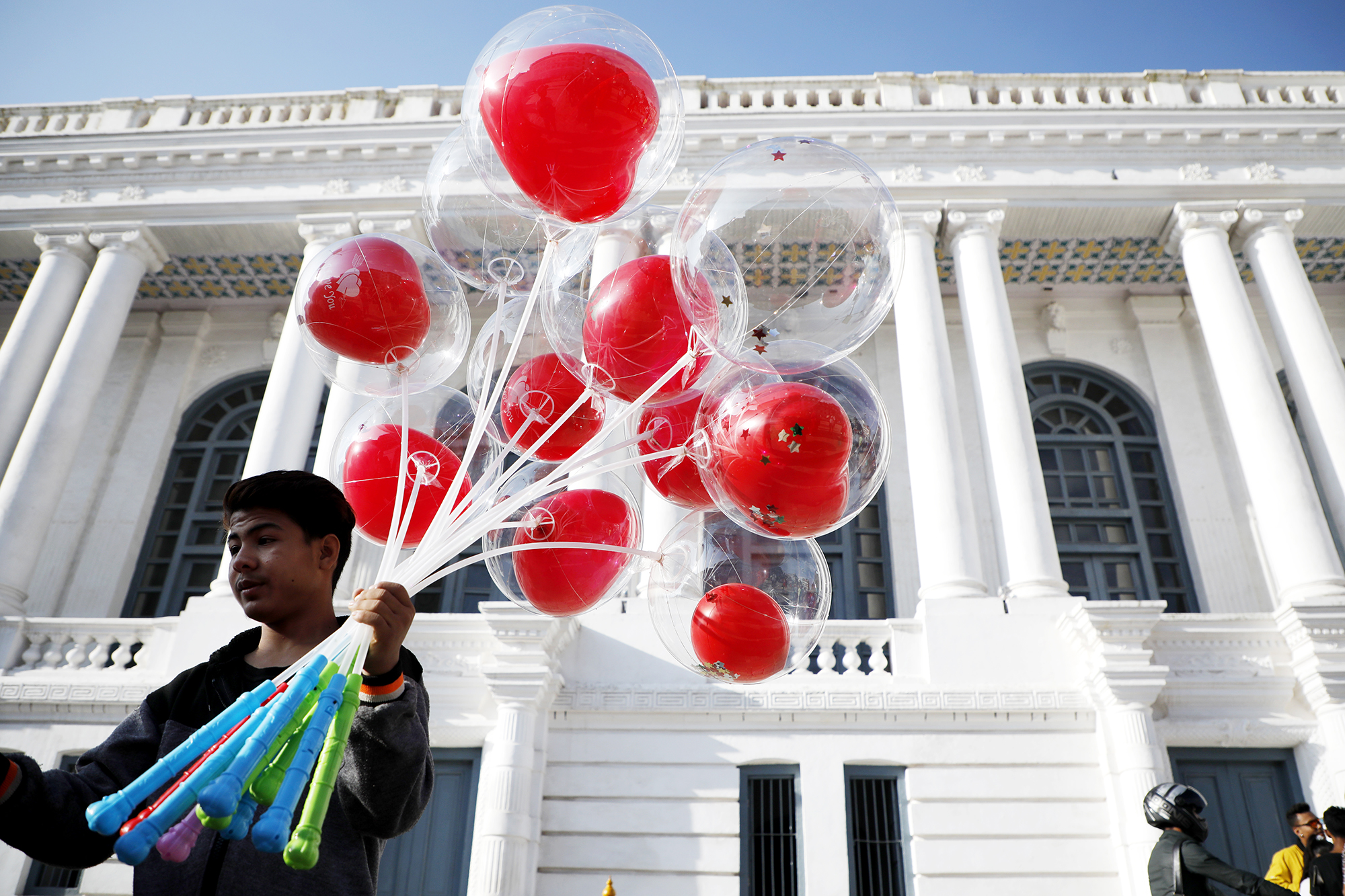 A vendor sells balloons at the Basantapur Durbar Square in Kathmandu on Monday. Sanjog Manadhar /TKP