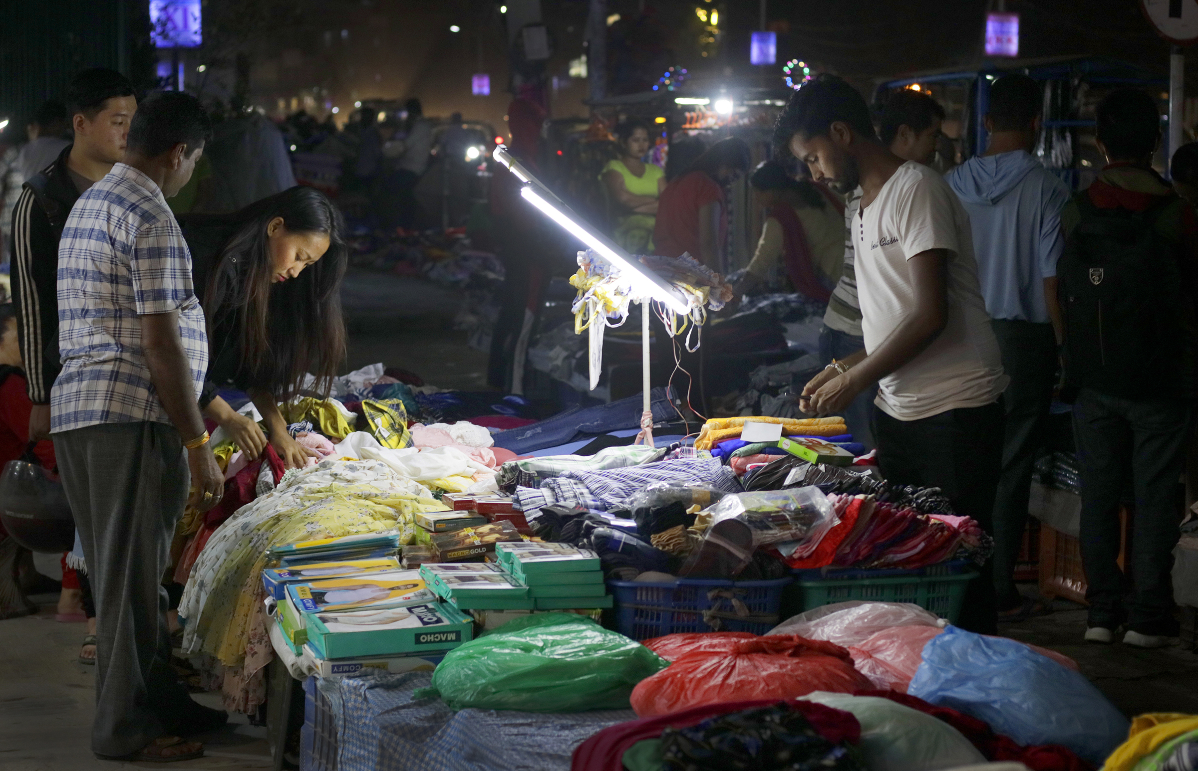 People shop for clothes at a roadside evening market at New Baneshwor in Kathmandu, on Sunday. Anish Regmi/TKP