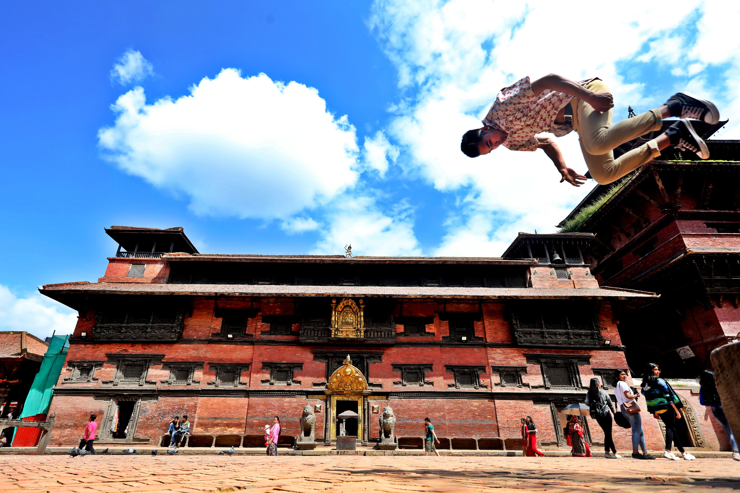Sajan, a member of dance group D Passion, practises acrobatic moves at Patan Durbar Square in Lalitpur. Elite Joshi/TKP